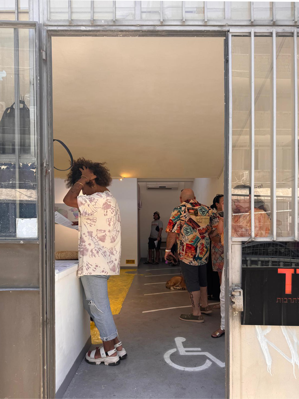 חלל הגלריה נראה כזירת רפאים שבה מופיעות עקבות לאירוע שהתחולל בה. הכובע, המונח מיותם על הבמה והיעדרן של דמויות אנושיות מעצימים את החרדה אך גם הופכים אותנו, המבקרים.ות, לשחקנים ושחקניות במחזה. ברק וגאפל מזמינים אותנו למרחב פעולה/ בחירה. רצפת הגלריה מחולקת לשניים: ״חניית נכים״ מסומנת מדלת הכניסה ועד לנישת החלל. יתר החלל מצופה לסירוגין בדבק, המיועד ללכידת עכברים ובו חורים (המאזכרים חורים בגבינה), המגביל את תנועת הצופה. מבנה ההצבה מייצר שני מסלולים לבחירה, אחד נוח ואילו השני מסוכן. הוא דוחק בנו לבחור האם להיות אקטיביים או פסיביים. האם להתקדם בחלל כסוכנים או להישאר לצפות מחניית הנכים? הוא מחייב אותנו להכריע איזה תפקיד נרצה לגלם; של קורבנות הילדים שנלקחו, של הנכים שנותרו מאחור כעדים לזוועה או אולי בכלל של עכברים במירוץ?