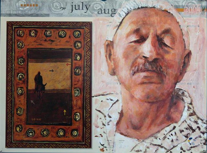 פרטי הדימוי: אסד עזי, אקריליק על נייר של לוח שנה, 45/55 ס"מ
