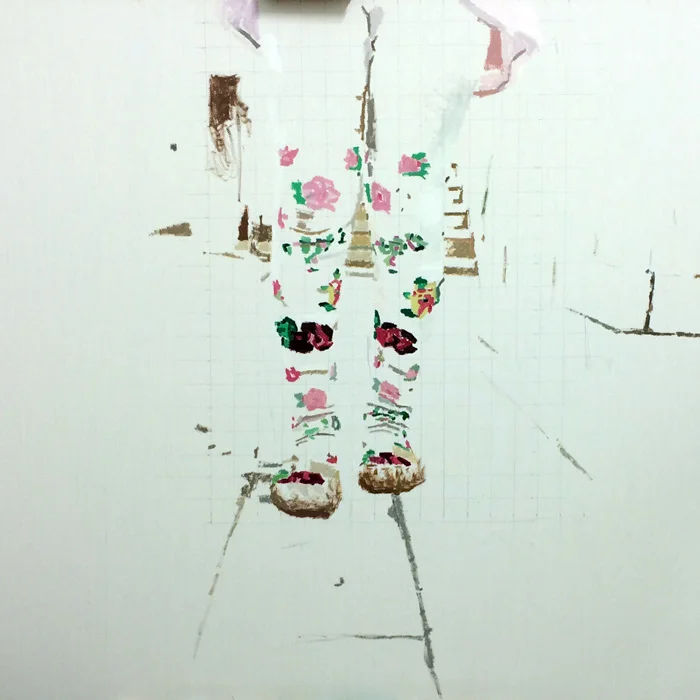 פרטי הדימוי: פאטמה שנאן דרע, עבודה בתהליך, שמן על בד, 110/140 ס"מ, 2016